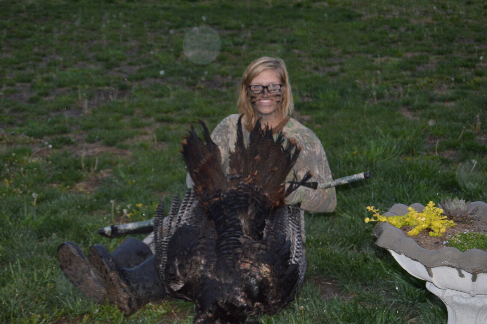 Kris’s son Drew and his fiance Emily were home from college for the weekend. Emily shot a 23# turkey. It was almost as  big as she is.