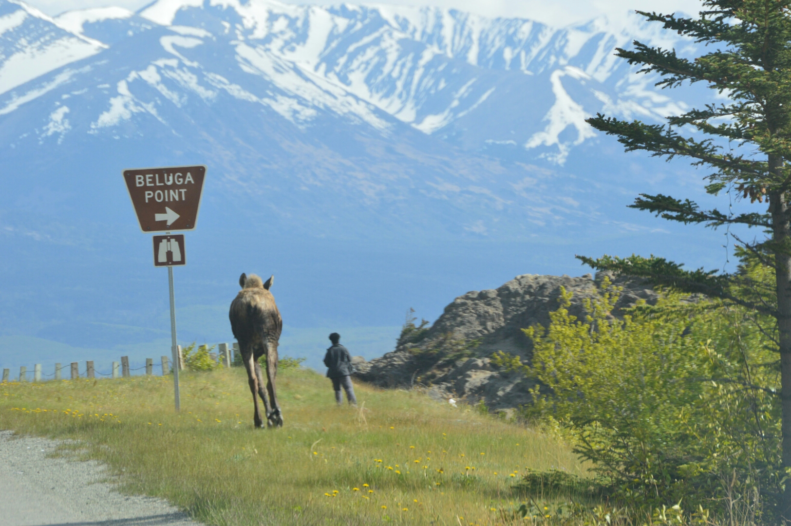 It ran accross the road on to one of the many turn out to the Turnagain Arm, and was running directly behind a woman who was takung pictures.